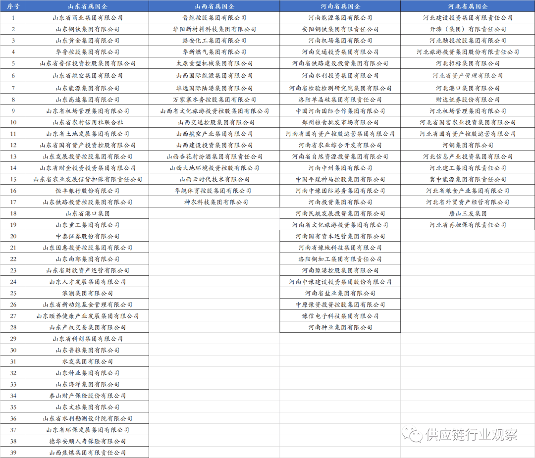 按照各地国资委披露的监管企业名录,江山四省共有省属国企103家,数量上占全国比沉的16%摆布。此中,属国企38家、山西省属国企18家,河南28家,19家。具体名录如下,下表山西焦煤应为山西省属国企。